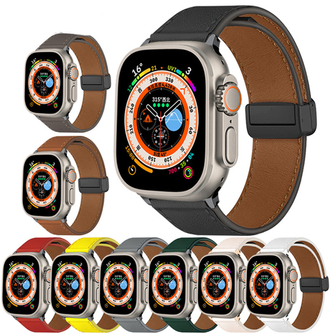 مشبك مغناطيسي من الجلد الطبيعي لساعة Apple ultra 8 7 se 5 سوار سوار correa سلسلة iWatch
